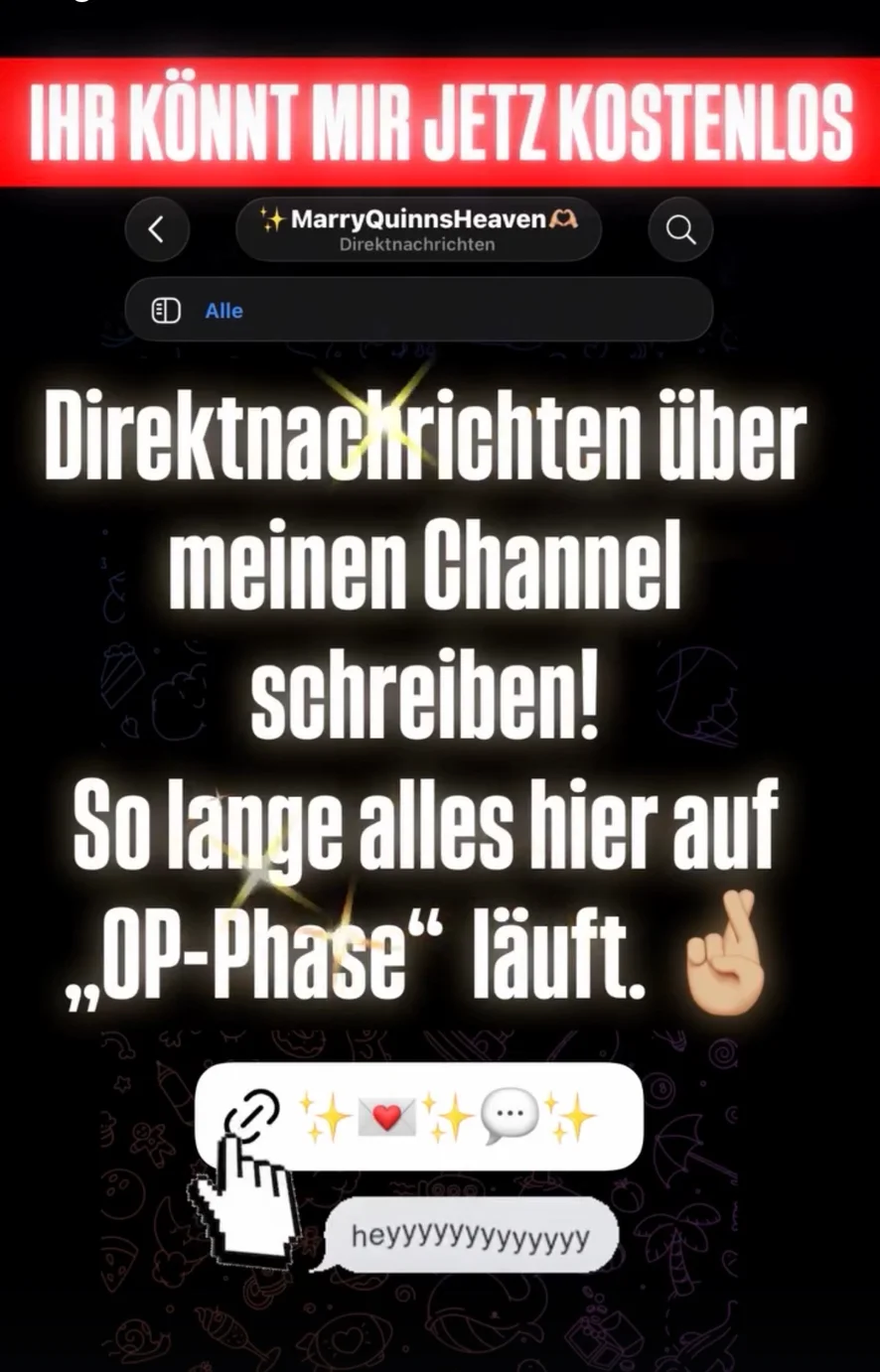 Werde Teil der Community, komm regelmäßig in die Streams bei S-Chat. 🐰 Jeder wird gesehen und sei die Frage noch so dreist. 🤌🏼 Ne Antwort kommt. 😜 Entweder du unterhältst damit den ganzen Chat. 💭 Weil es von Marry eine freche Antwort auf deine frechen Fragen gibt…🙃 oder aber du sorgst dafür das Quinn erwacht und es für alle rund geht. 🖤😉